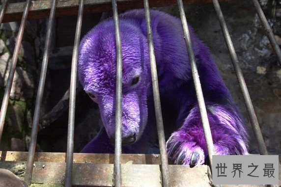2011年,阿根廷首都布宜诺斯艾利斯西北1100公里外的Mendoza动物园出现了一只紫色的北极熊。这张照片被传到网上后,引起了人们的热烈讨论。“天呐,这头紫色北极熊太漂亮了,它是怎么样长成这样的,实在是不可思议。”“它看起来就像毛绒玩具一样,非常可爱。”“我表示怀疑,北极熊怎么回事紫色的呢?难道是人为给它变的颜色。”“这样照片也许是PS的。”
