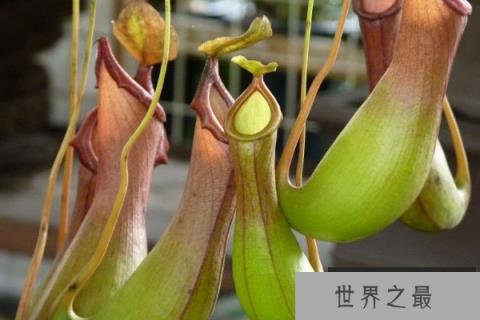 猪笼草算是世界上最有趣的草中唯一吃肉的植物,它的目标大多是小昆虫,它的样子非常的奇特有趣,形似一个茄子状的笼子,在笼口还长有一块“盖子”,笼内壁分泌着极其粘稠的液体,只要昆虫一落到笼子边上,就会逐渐粘连并且滑入其中,最终被液体溶解。