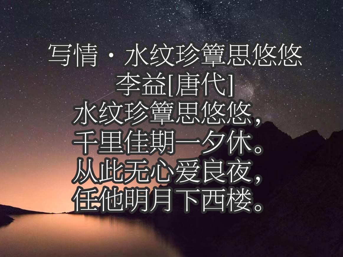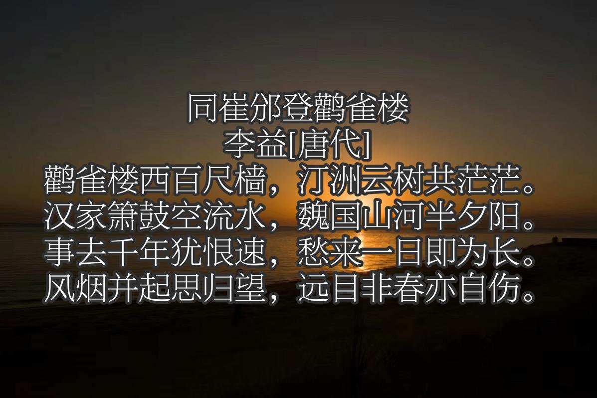 李益也是唐代最长寿的诗人之一,他活了80多岁。这在当时来说已经是很长寿、很高龄了。下面,让我们一起欣赏这位高寿诗人的高明之作吧。