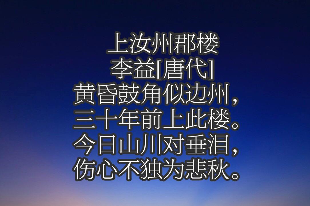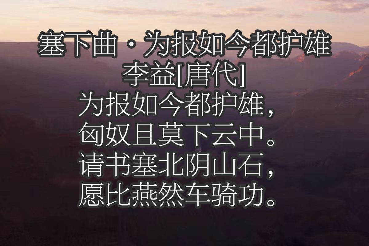 读他的诗,会领略到无比苍茫冷峻的边塞风光和天高地阔的塞上风情,落日、雁门、孤云、秋苔、暮年,读来伤感,却又觉得美轮美奂、意境高深。