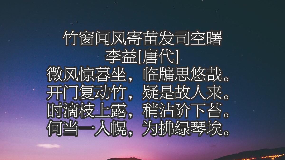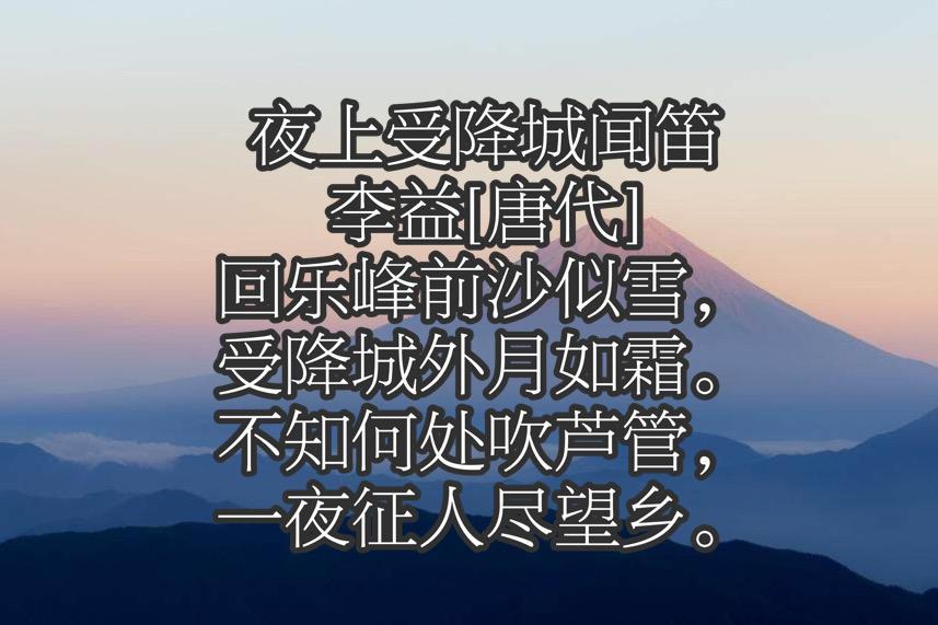 李益是中唐边塞诗的代表诗人,他的诗风豪迈壮阔,但略微感伤。他的《送辽阳使还军》和《夜上受降城闻笛》这两首诗,当时被广为传唱、流传甚广。