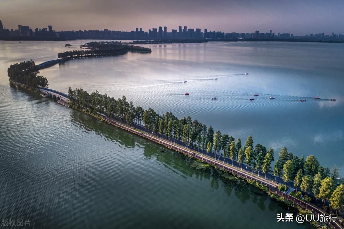 武汉东湖是全国最大的城中湖,面积是杭州西湖的六倍,第一眼看到东湖,一定会以为这是个郊外的大型湖泊。