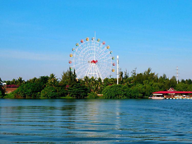 假日海滩长达6公里,左沿是葱翠的林麻黄林带,其间错落着度假村、宾馆、游乐场等;