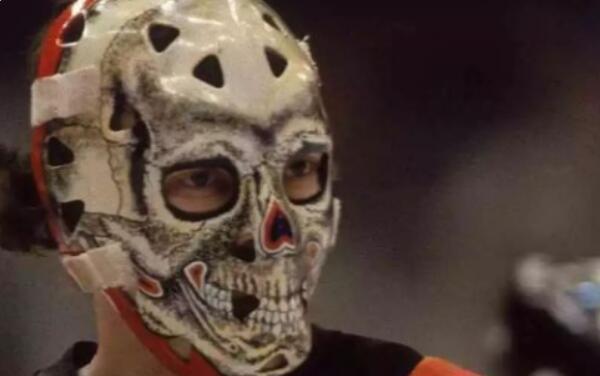 在NHL中,除了老虎面具外,还有一个骷髅面具是让人惧怕的,它就是温哥华加人对Bromley曾经带过的头骨面具。