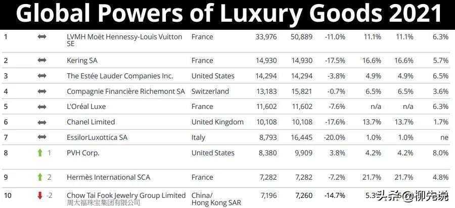 下面简单介绍一下2021年全球前十大奢侈品公司的经营情况。