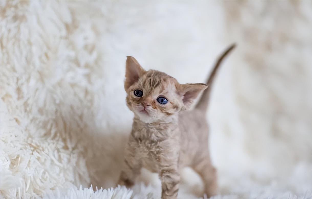 德文卷毛猫来自英国,它们喜欢亲近人类。它是各个品种中最喜欢与人类接触及交朋友的品种之一。它活泼近人的性格与极其易于打理的皮毛,绝对是一只理想的家庭猫。