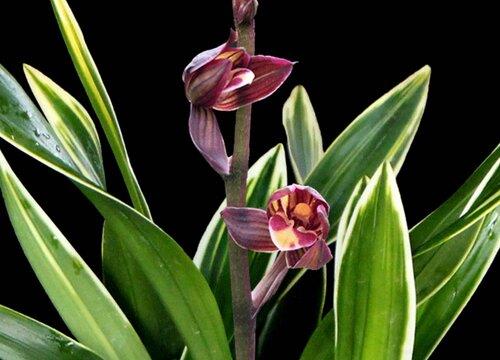 4、墨兰(报岁兰)开花时间:10-3月,一根花杆开花数量在一二朵。香味:淡香。