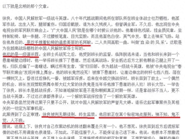 此时,徐良彻底从大家的视线中消失了,网上就出现了一篇署名“北明”发表的文章,文中称: