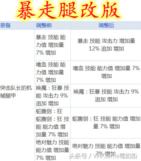 二、暴走腿属性改版!