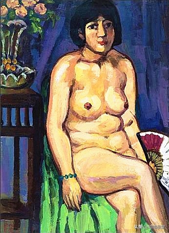 在中国美术史上,关紫兰是中国第一位创作人体油画的女画家,早在上大学期间就创作了许多人体习作,她最著名的人体油画无疑是创作于1931年的《持扇裸女》,属于典型的中西合璧的杰作。画中女子手握扇子,眼神中透露出羞涩和高冷,既有中国女性的矜持,又有西方女性的高傲,始终以一种世界眼光审视着周围的一切。