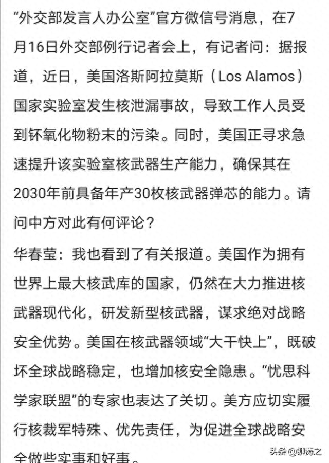 最近,美国最大的核武器工厂“洛斯阿莫斯国家实验室”核泄漏引发关注。该工厂正在恢复核弹量产能力,预计2030恢复到每年30枚核弹头。当然,这比起冷战一年1000+产能还是低了很多。那么就让我们看看几个数字,让大家了解一下为啥核弹头那么困难。
