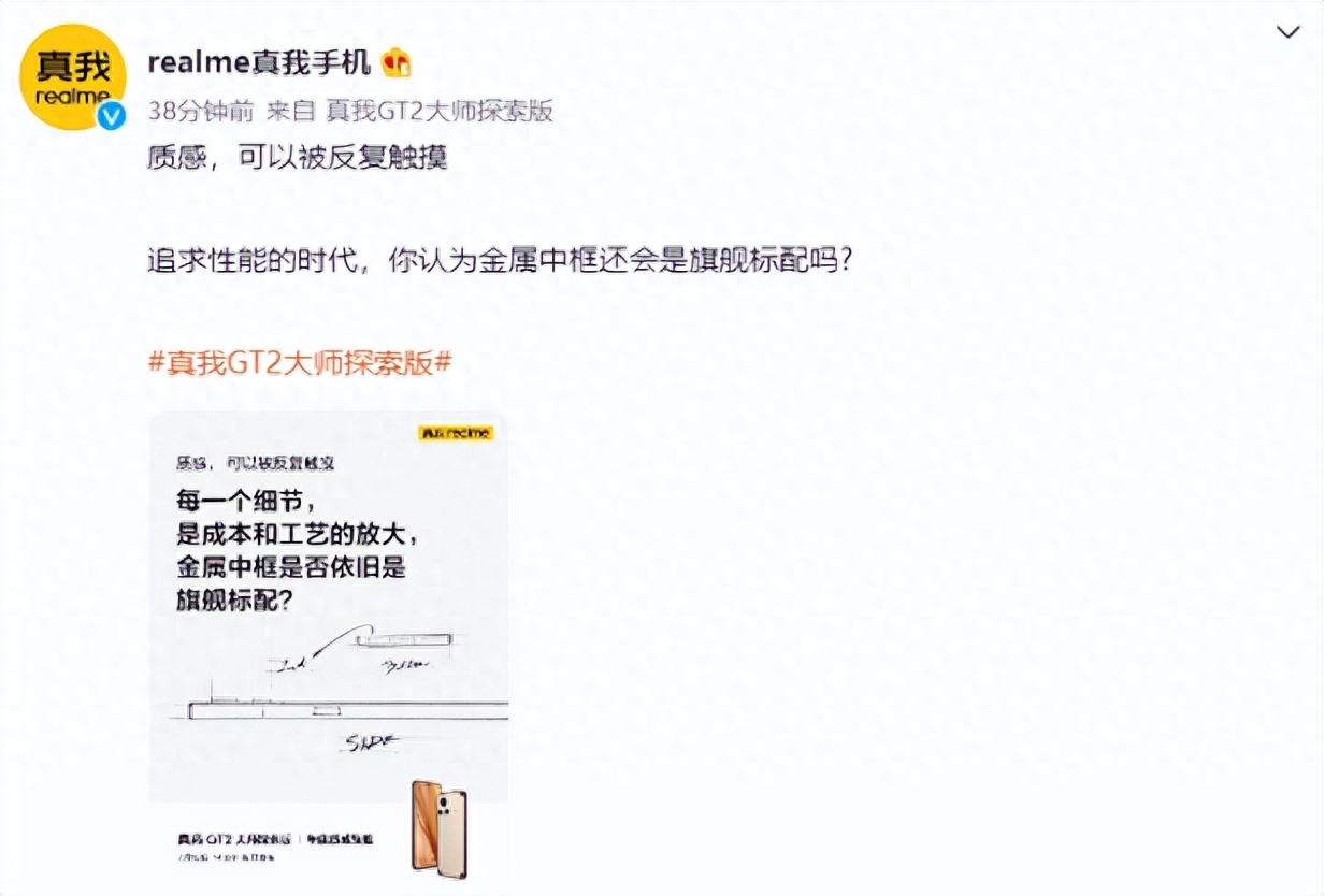 确实!从 realme 官微最近对于 “ 质感 ” 、“ 设计 ” 、“ 做工 ” 等反复强调。