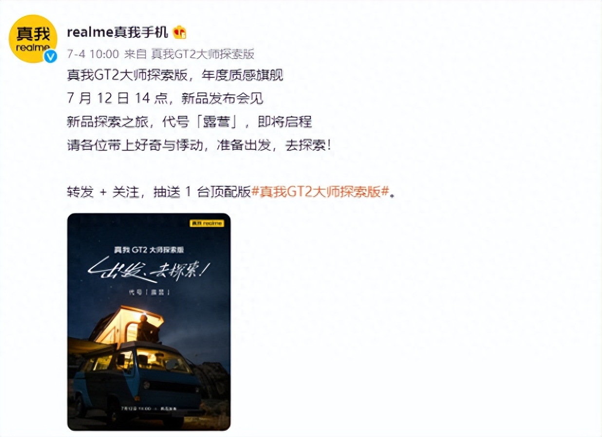 在这个月的 12 号,也要发布 realme GT2 大师探索版。