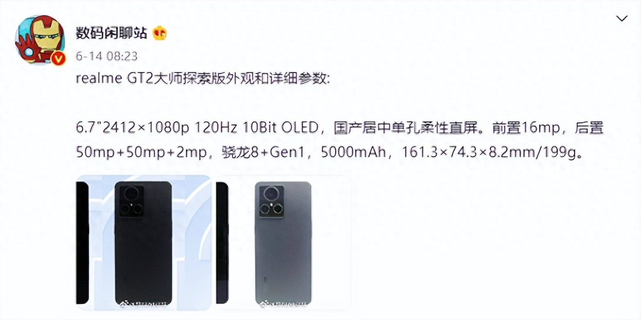 硬件参数这块,目前微博大 V @数码闲聊站 也公布了出来: