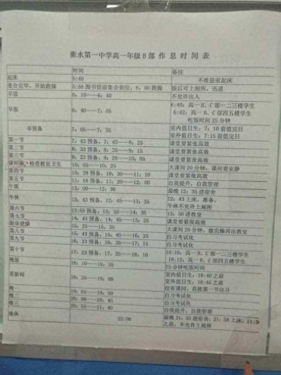 衡水中学通过独有的封闭学校作息时间,将学生们的时间管理细化到每分每秒,就连吃饭都是争分夺秒,在学校中一切和学习无关的事情都是被禁止的,在这种严格的管理下,学生们早已成为了学习的机器只有一个目的就是考上一本,考上清华北大。