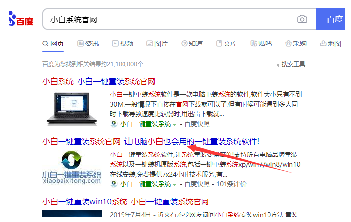 2.然后打开浏览器,在小白系统官网下载小白一键重装系统软件。