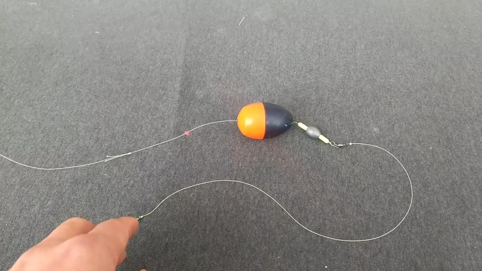 升级完的这个鲶鱼钓组啊,是这么一个结构的。从抛干出来的主线,棉线结控制阿波的,调整水深的。半圆挡限制阿波,铅坠儿辅助鱼饵下水。八字环防止大鱼咬钩后,主线拧麻花。子线要80公分给鱼饵增加活性,鱼钩儿呢,最好用子母钩儿啊,大号儿的,因为大家都知道那个鲶鱼的嘴很大。最好是用子母钩儿。看一下整体结构。再分享一下它的实际操作和适用水域。一般会把这个钓组拴在矶钓竿上,或者是路亚竿,海竿儿当然也可以。适用水域:基本上什么水域都可以用啊,江河湖水库,溪流,等等。除了激流啊,或水流特别大不能用。