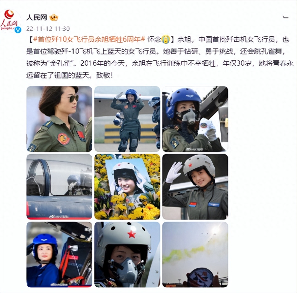 2022年11月12日,人民网发帖向余旭表达了怀念和致敬,帖子的最后一句话是“她将青春永远留在了祖国的蓝天。致敬!”与此同时,帖子还带上首位歼10女飞行员余旭牺牲6周年的词条。众多媒体纷纷转发,词条顶上热搜,网友哀声一片。