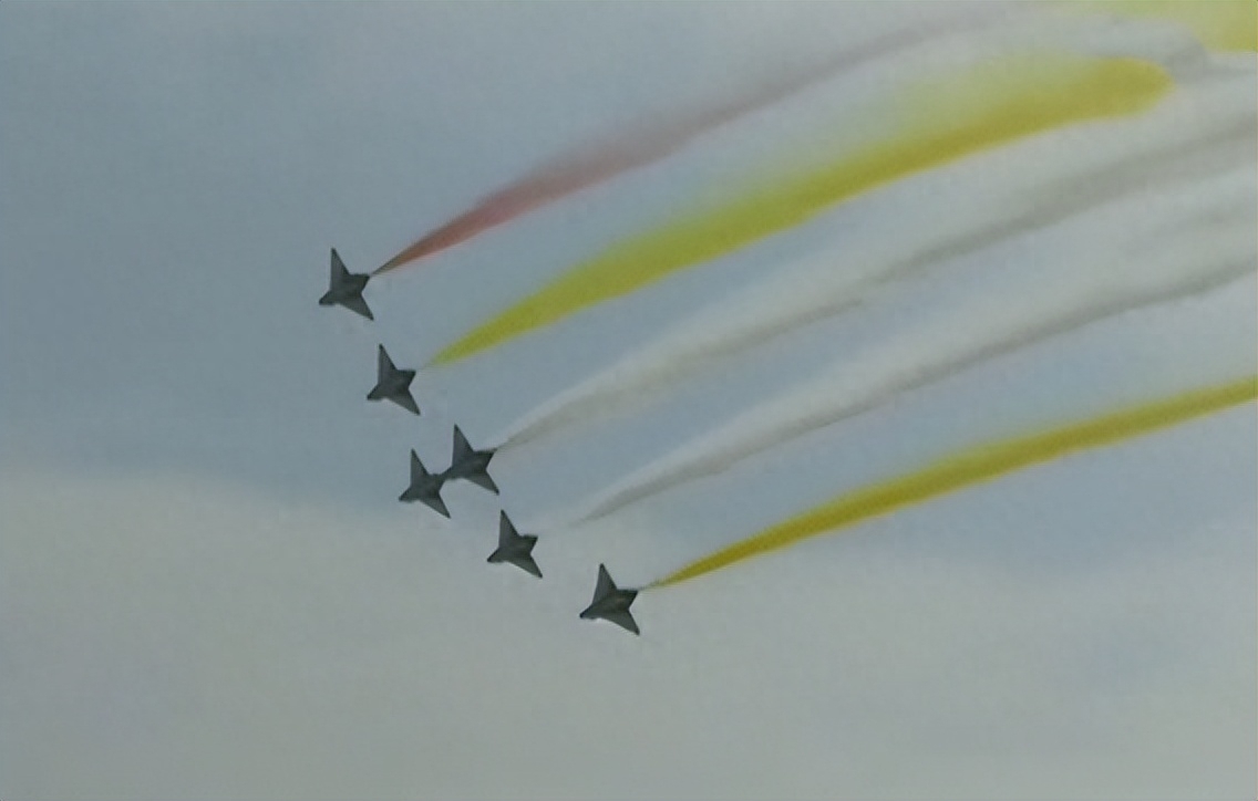 在这次的飞行表演中,一个叫“水平开花”的动作,观众看得惊心胆颤。因为歼击机之间的距离挨得最近的时候,只有3米。眼看快要撞上的时候,它们突然如绽放的花朵一样,四散开来。