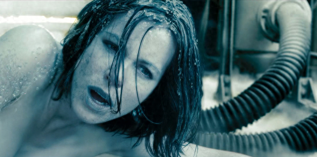 这是闺女已经被抓回了研究所,原来那个袭击吸血鬼据点的巨型狼人果真是研究所的成果,而且这个科学家还想的更加疯狂,想要将这个举行狼人与闺女同床,以便早就更加强大的混血后代,但是人家一个好好的闺女怎么会被这种牲口糟蹋了,人家她娘干翻过马库斯,她爹干翻过威廉。于是瑟琳娜同学依旧是12年前的皮衣,一通屠杀之后,居然在一个房间发现了装有迈克的冰箱,但是此时女儿正在危机关头,瑟琳娜只得给冰箱一枪,让迈克自己解脱出来,便转身去救闺女了。