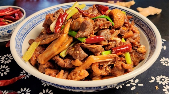 ,翻炒片刻后,将鸭肉下锅,最后加入啤酒。