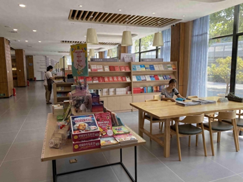 一楼大厅里,公共阅读区宽大的原木桌椅泛着淡淡的光泽,一排排整齐的书架上摆满崭新的各类书籍,温馨的亲子共读区陈列着孩子们喜爱的绘本图书,两台喜马拉雅朗读亭依墙而立,特别开辟的幼儿阅读区不仅铺设了软垫更是贴心地设置了适合孩子们拿取图书的儿童书架,定期更换的有声图书以“图书封面+二维码”的形式被陈列在墙上,方便大家随时扫码聆听。
