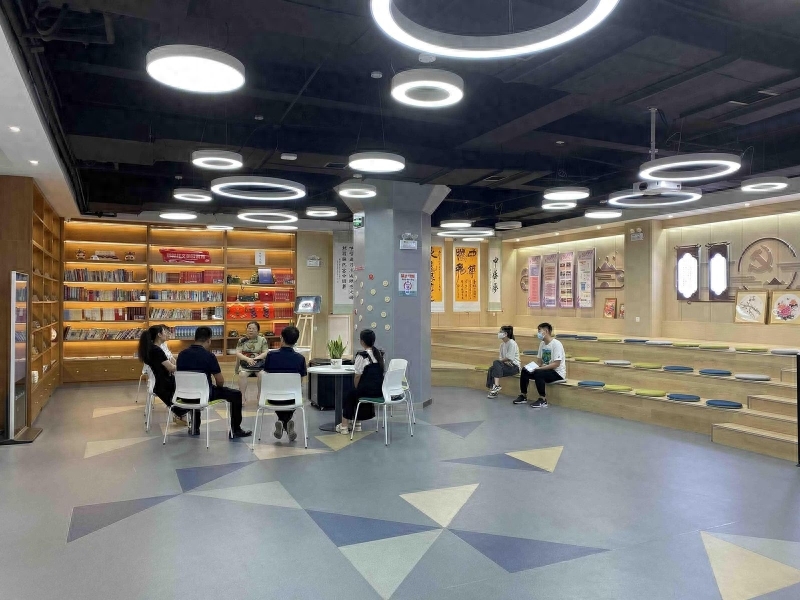 “这些书法作品、面塑作品都是我们街道的职工群众在这里开展文化活动时创作的,我们将优秀作品陈列在这里,对大家也是一种鼓励。我们的职工书屋建于2015年,2020年新建党群服务中心后将职工书屋设立在这里。党群服务中心同时设有便民服务中心和退役军人服务站。为了更好地服务群众,满足不同职业群体的阅读需求,职工书屋里特别设置了残疾人角和军人角。”西安市莲湖区枣园街道党建工作办公室副主任杨靖告诉记者,因为各个区域企事业单位分布和居住人群构成的不同,每个职工书屋都会根据自身特点配置书籍、开展活动。枣园街道依托职工书屋开展的职业技能培训、党史书画展、读经诵典分享会、非遗传承体验课等活动深受职工群众欢迎。