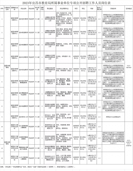 ● 宜昌市教育局所属事业单位专项公开招聘工作人员,涉及13个岗位,共招聘19人。报名时间:2023年3月6日8:00至3月8日17:00。