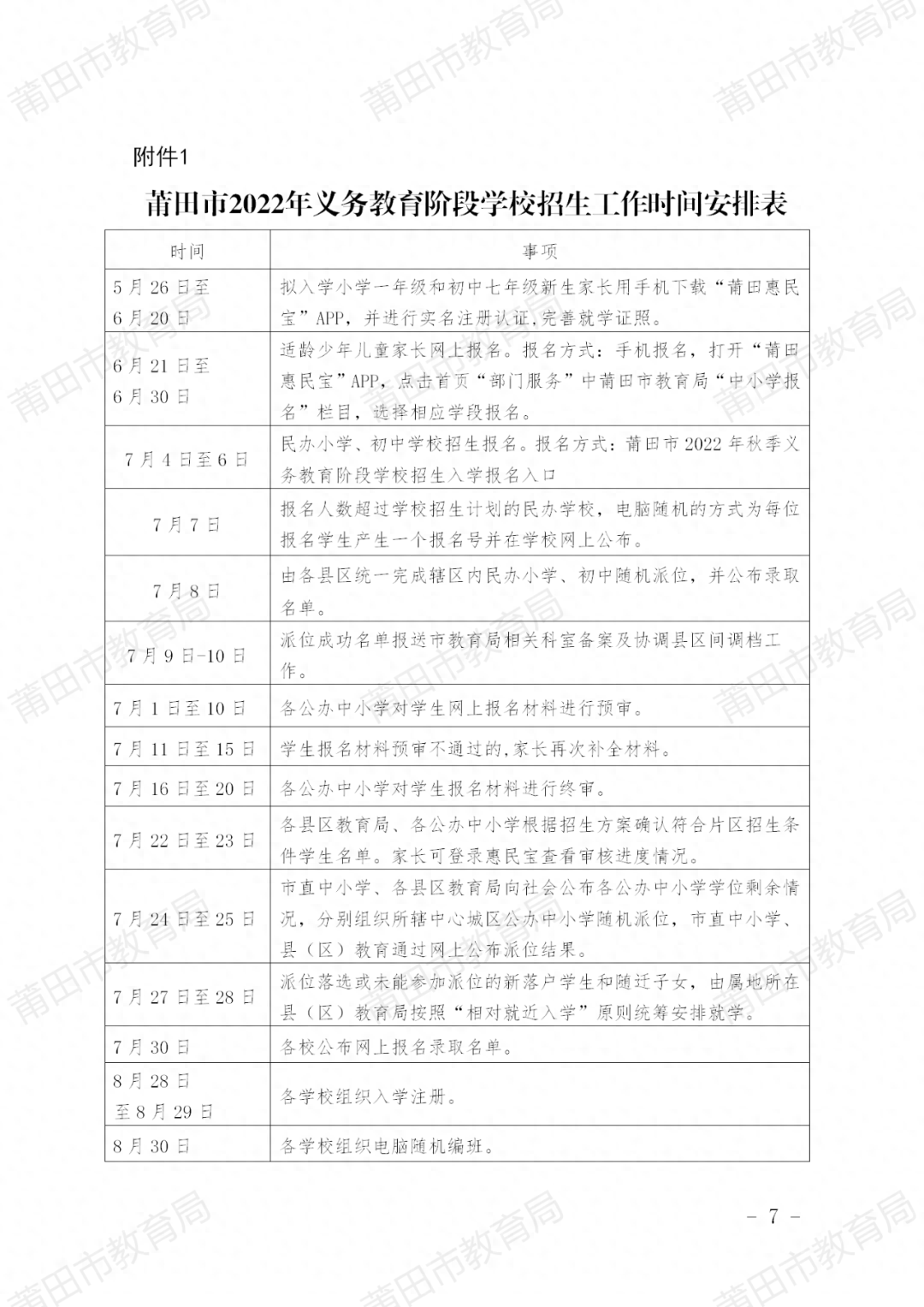 1.2022年莆田砺志学校一年级及七年级招生随机摇号派位说明