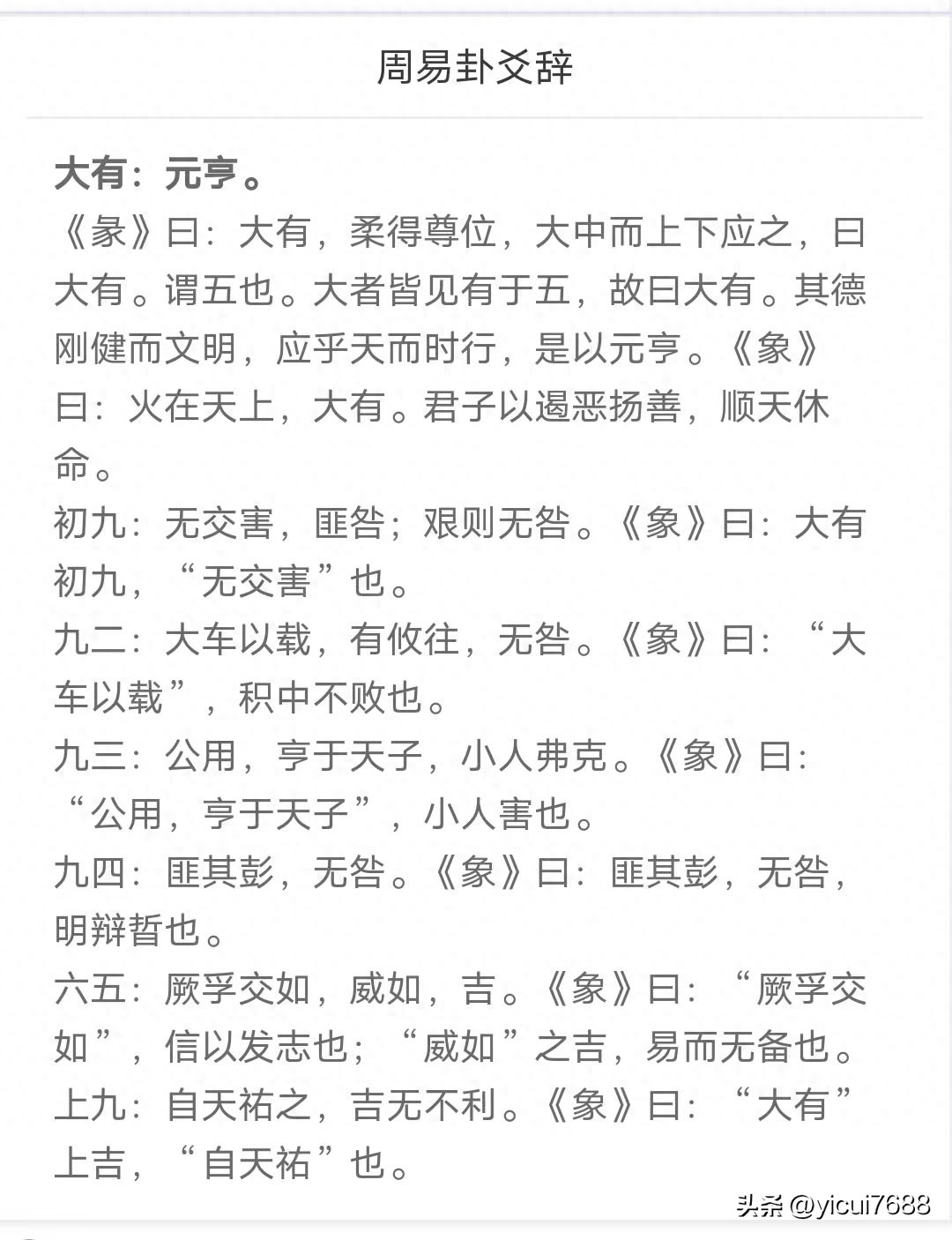 所以大有卦讲的是啥?就是在同人卦开辟出一片新天地后(我们可以把它比喻成一个国家),各阶层全力以赴、共同奋斗的一副繁荣发展的景象。