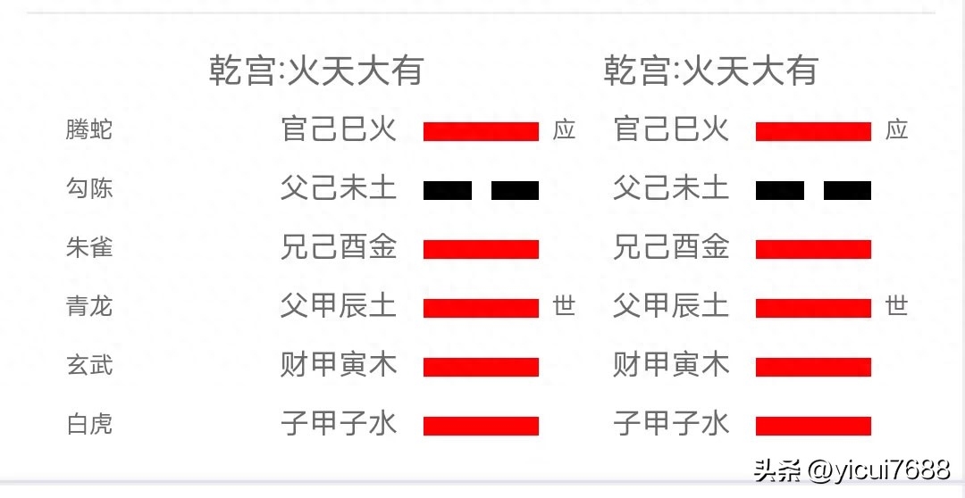 我们可以把同人卦比喻成创业时刚打下一片根据地的时候,而大有则是进入高速发展期。也可理解为同人卦是拨乱反正,大有则是围绕正确的指导思想快速发展。同人卦与大有卦的主要区别是,同人卦的指导思想,从六二爻发展到了六五爻,大有卦的六五爻占据了至尊的位置,其决定性的指导作用,并且其它五爻都服从六五的领导。