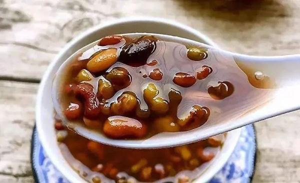 ②将三豆放入锅中,加水600毫升,小火煎熬成150~200毫升,加适量白糖或冰糖,连豆带汤食用。