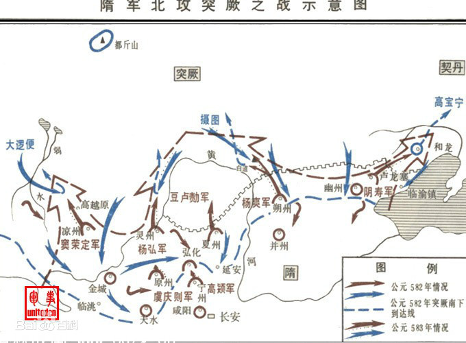 杨坚态度的改变,是沙钵略可汗难以容忍的。于是他于581年派遣军队开始进攻隋朝。582年,沙钵略可汗“悉发五可汗控弦之士四十万入长城”,这里的五可汗就是五大可汗,除了沙钵略可汗之外,还有处罗侯、达头、阿波、贪汗四个小可汗,而菴罗为北面可汗驻守本部。五大可汗从各个方面出击,沙钵略兵临渭河,达头攻陷河西,处罗侯进攻幽州,隋朝面临亡国危机。