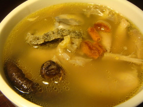 1.鸡,瘦肉洗净川烫去血水后捞起.干香菇, 枸杞清洗干净