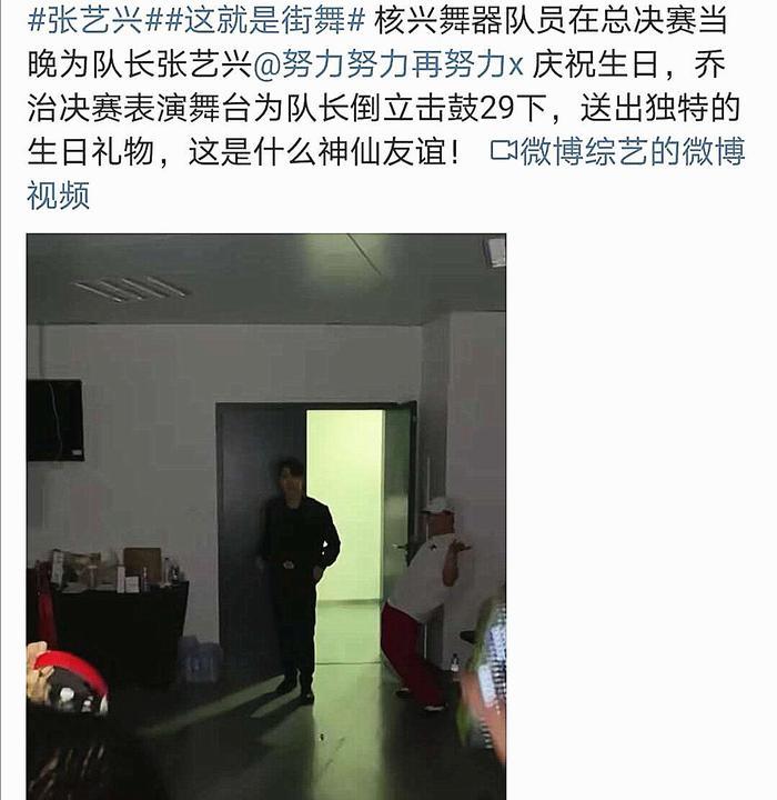 此外,核兴舞器队员在总决赛当晚的表演舞台为张艺兴倒立击鼓29下,送出独特的生日礼物,令网友们津津乐道。