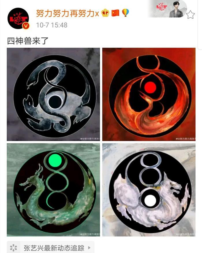 张艺兴生日这天,他自己也非常活跃,发了好几条微博。下午还发了“四神兽来了”。令广大粉丝兴奋不已,据悉张艺兴从2015年甚至更早前就开始建构他的专辑体系,用5年时间来画这个图,实体专辑一共四张,四色,四个概念都能串联。可谓非常优秀。