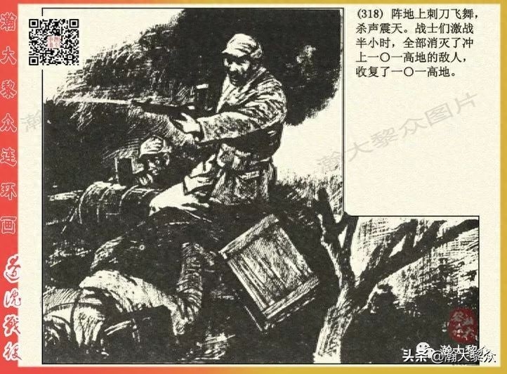 318 阵地上刺刀飞舞,杀声震天。战士们激战半小时,全部消灭了冲上一O一高地的敌人,收复了一O一高地。