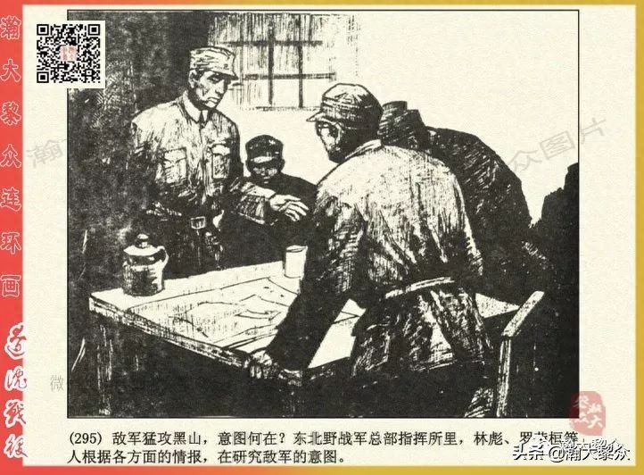 295 敌军猛攻黑山,意图何在?东北野战军总部指挥所里,林彪、罗荣桓等人根据各方面的情报,在研究敌军的意图。