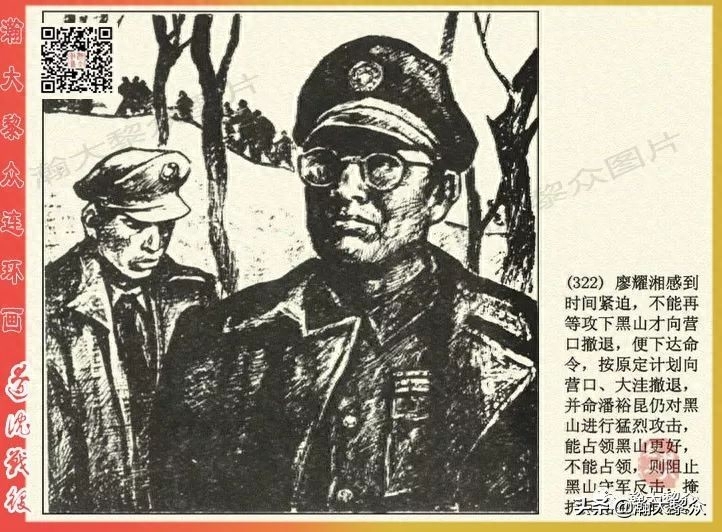322 廖耀湘感到时间紧迫,不能再等攻下黑山才向营口撤退,便下达命令,按原定计划向营口、大洼撤退,并命潘裕昆仍对黑山进行猛烈攻击,能占领黑山更好,不能占领,则阻止黑山守军反击,掩护兵团主力转移。