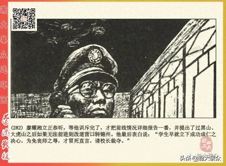 282 廖耀湘立正恭听,等他训斥完了,才把前线情况详细报告一番,并提出了过黑山、大虎山之后如果无法前进则改道营口转锦州。他最后表白说:“学生早就立下成功成仁之决心,为免丧师之辱,才冒死直言,请校长裁夺。”
