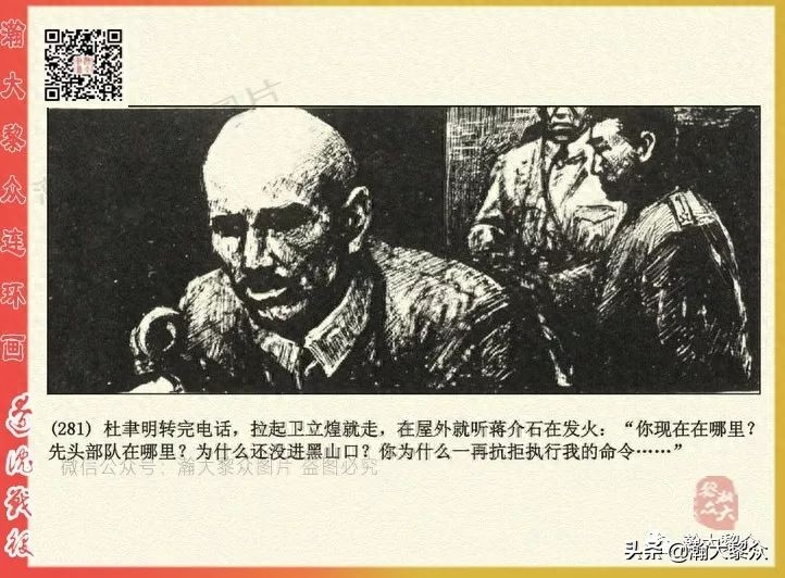 281 杜聿明转完电话,拉起卫立煌就走,在屋外就听蒋介石在发火:“你现在在哪里?先头部队在哪里?为什么还没进黑山口?你为什么一再抗拒执行我的命令……”