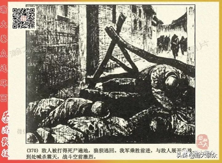 370 敌人被打得死尸遍地,狼狈逃回。我军乘胜前进,与敌人展开巷战。到处喊杀震天,战斗空前激烈。