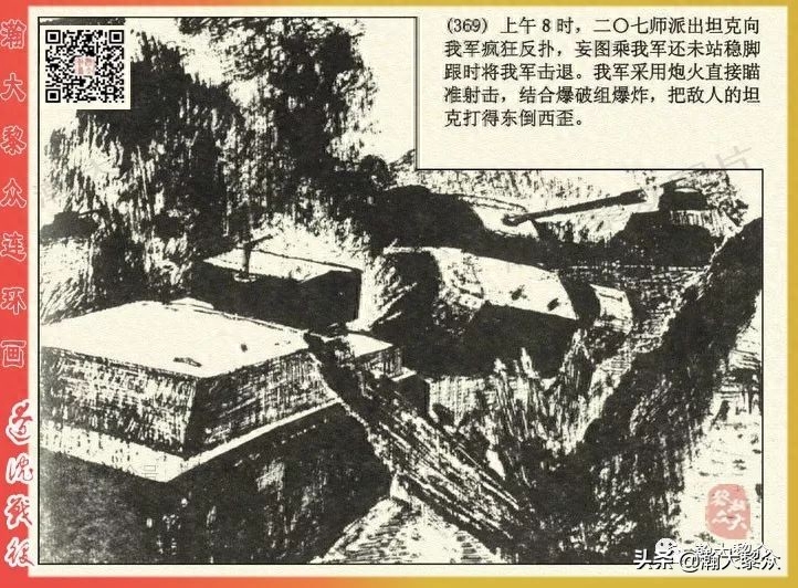 369 上午8时,二O七师派出坦克向我军疯狂反扑,妄图乘我军还未站稳脚跟时将我军击退。我军采用炮火直接瞄准射击,结合爆破组爆炸,把敌人的坦克打得东倒西歪。