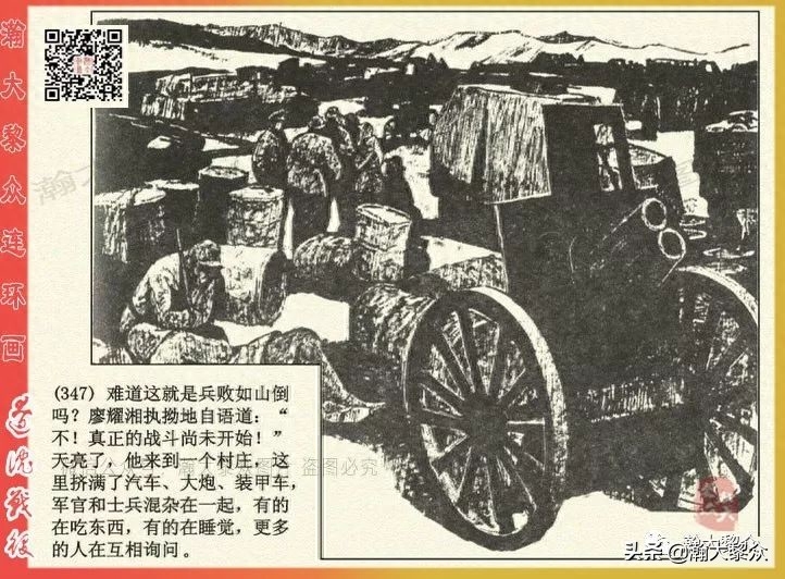 347 难道这就是兵败如山倒吗?廖耀湘执拗地自语道:“不!真正的战斗尚未开始!”天亮了,他来到一个村庄,这辽里挤满了汽车、大炮、装甲车,军官和士兵混杂在一起,有的在吃东西,有的在睡觉,更多的人在互相询问。