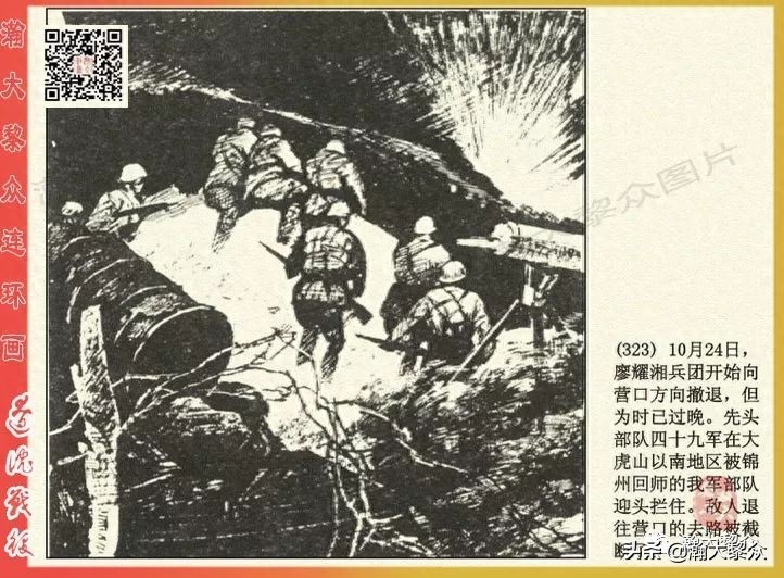 323 10月24日,廖耀湘兵团开始向营口方向撤退,但为时已过晚。先头部队四十九军在大虎山以南地区被锦州回师的我军部队迎头拦住。敌人退往营口的去路被截断了。