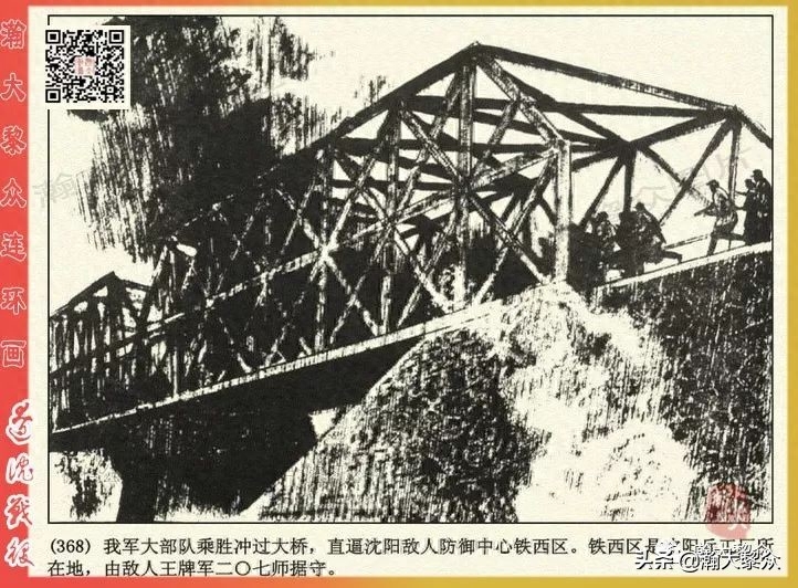 367 在硝烟弥漫中,三十六师奋勇前进,扫除了浑河大桥北端全部敌人据点。