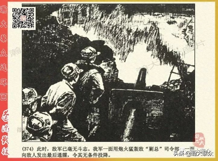 374 此时,敌军已毫无斗志。我军一面用炮火猛轰敌“剿总”司令部,一面向敌人发出最后通牒,令其无条件投降。