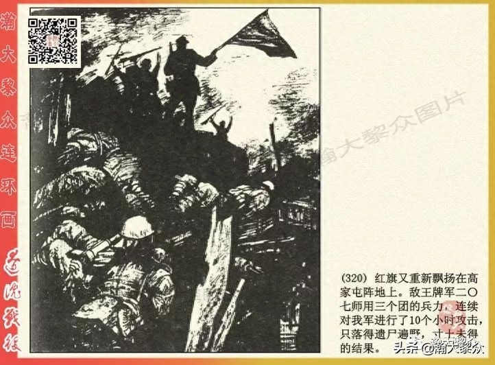 320 红旗又重新飘扬在高家屯阵地上。敌王牌军二O七师用三个团的兵力,连续对我军进行了10个小时攻击,只落得遗尸遍野,寸土未得的结果。