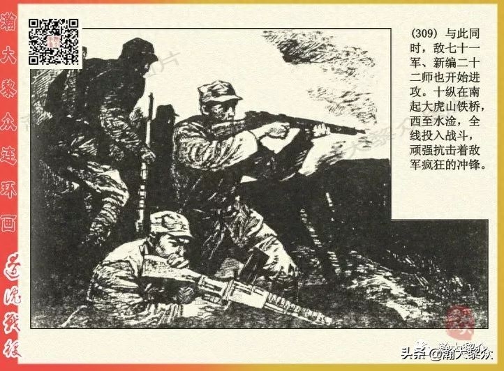 309 与此同时,敌七十一军、新编二十二师也开始进攻。十纵在南起大虎山铁桥,西至水淦,全线投入战斗,顽强抗击着敌军疯狂的冲锋。