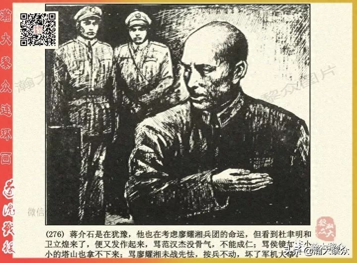 276 蒋介石是在犹豫,他也在考虑廖耀湘兵团的命运,但看到杜聿明和卫立煌来了,便又发作起来,骂范汉杰没骨气,不能成仁;骂侯镜如连小小的塔山也拿不下来;骂廖耀湘未战先怯,按兵不动,坏了军机大事。